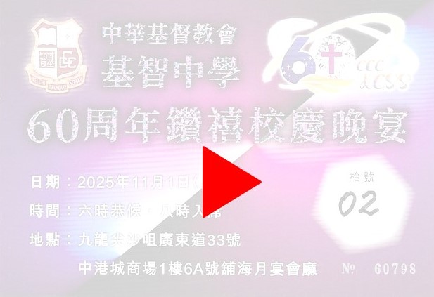 60周年校慶 看相片內容請點撃圖像 基智中學六十周年校慶晩宴照片 基智中學六十周年校慶晩宴照片– 由許培華校友提供 基智中學六十周年校慶晩宴片段–精華版 基智中學六十周年校慶晩宴片段– 由汪恩賜校友提供